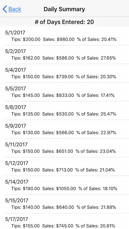 The Waiter/Waitress Tip Tracker iPhone/iPad app allows you to easily monitor and manage your tips. With this app, you can keep track of your Lifetime, Year-to-Date, and Month-to-Date totals, which include your tips, sales, and tip percentage of sales. Additionally, you can view your data by Years, Months, or Days.