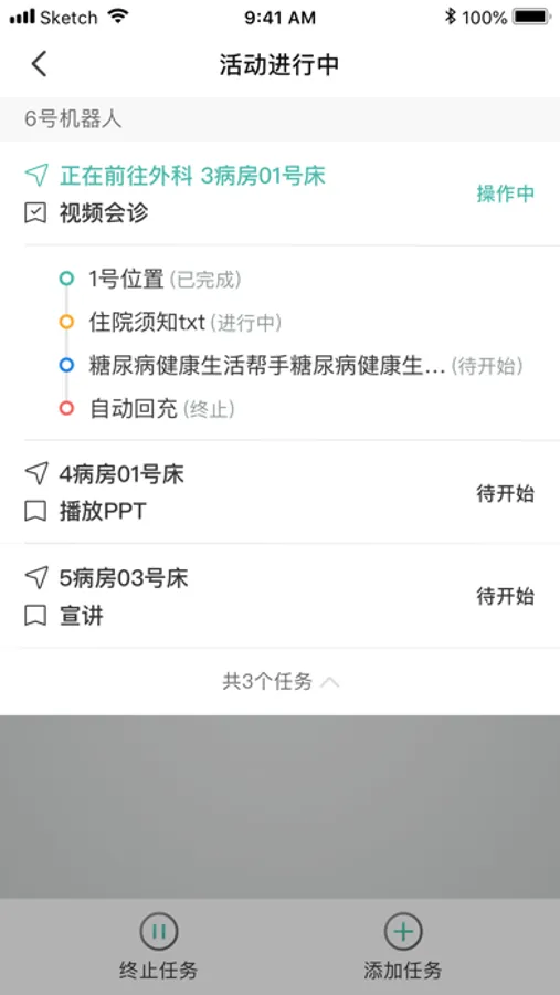 通过Airface机器人申请定时定点巡检,自动移动到病房的病人前,进行巡检和宣教。可替代部分护士的重复性工作,提高了护士的工作效率,也节省了大量重复性工作的时间。