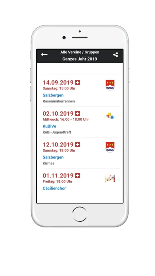 Die Termine können über WhatsApp, Twitter oder Google+ geteilt werden.