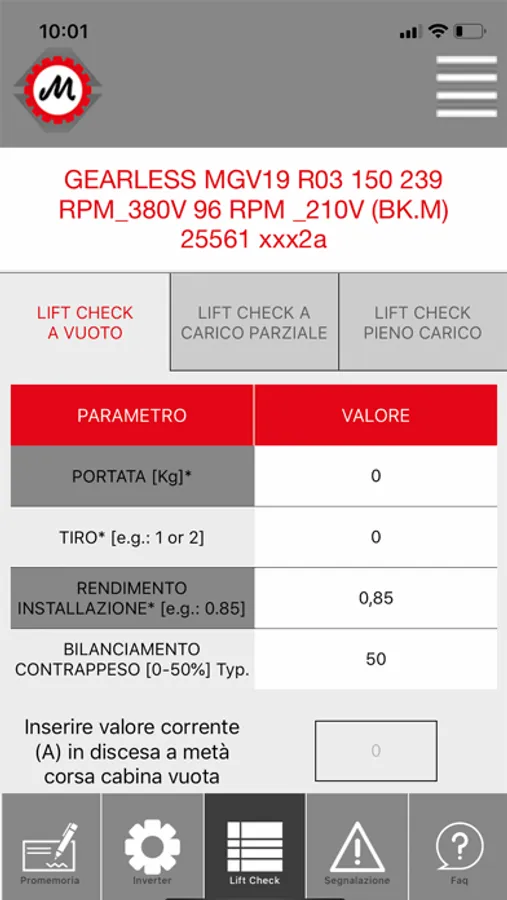 · Rated and operational data of the product selected: gearbox, gearless, speed governor or safety device.