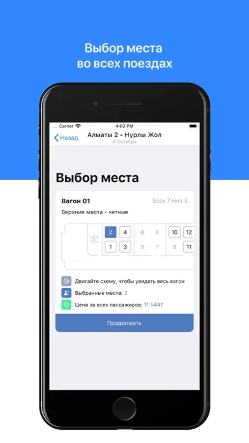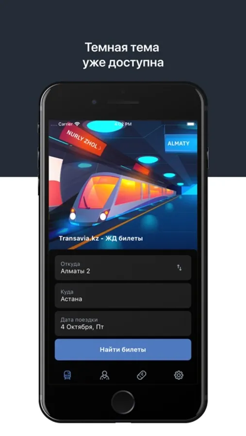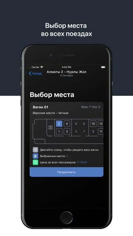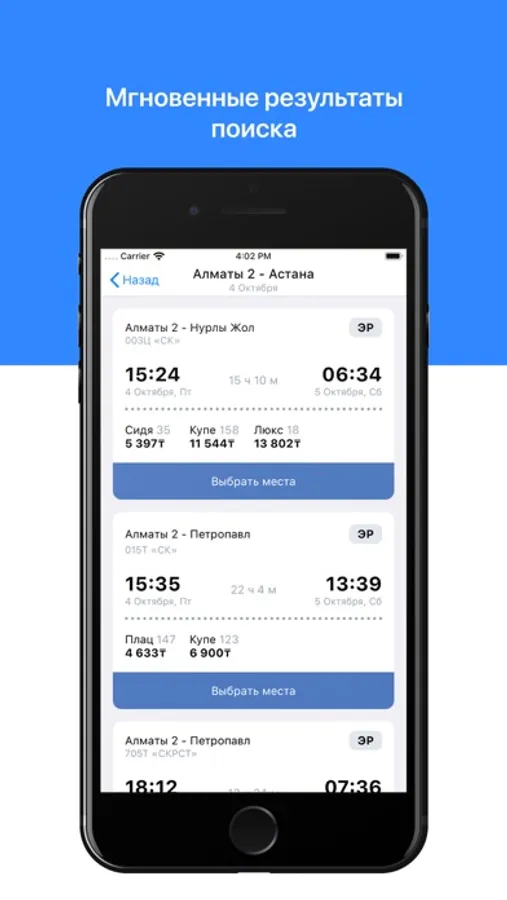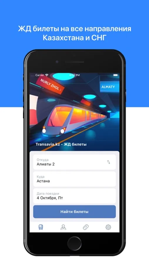 В приложении можно купить билеты на поезд Алматы-Нур-Султан, билеты на поезд Алматы-Шымкент, билеты Алматы-Атырау и любые другие ЖД билеты по Казахстану. Покупать билеты с нами удобно и выгодно!