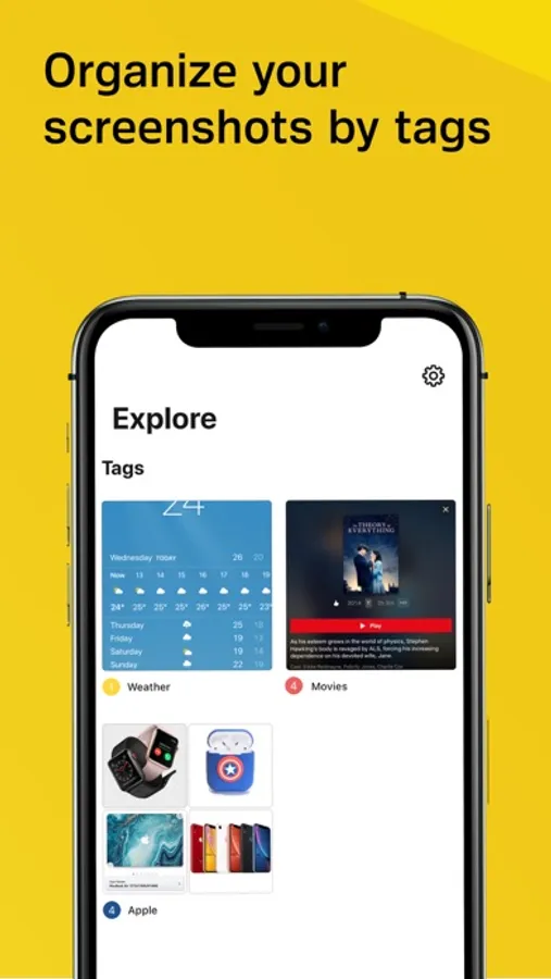 - Tag any content: divide your screenshots into categories using tags to find them immediately thanks to the "explore" feature or search for them using the "search" function.