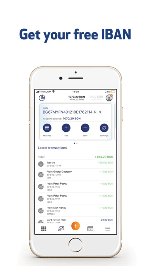 * Безплатен IBAN. Отваряш собствена сметка с IBAN, напълно безплатно за няколко минути през своето мобилно устройство.