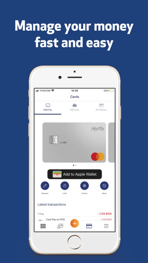 * Плащания на POS - терминал в различни държави. MyFin е дигитален портфейл, който ти позволява да правиш плащания бързо и сигрурно в различни държави.