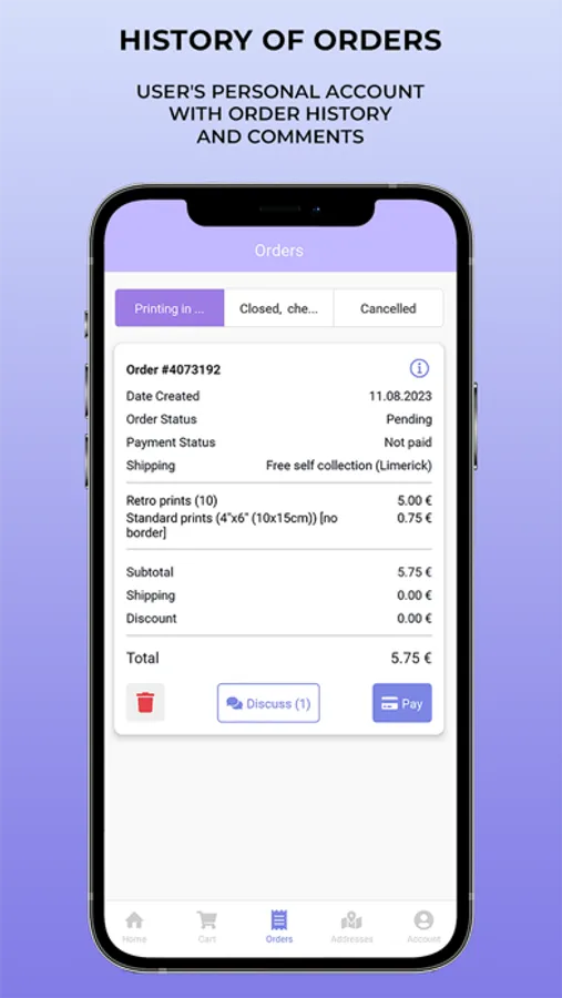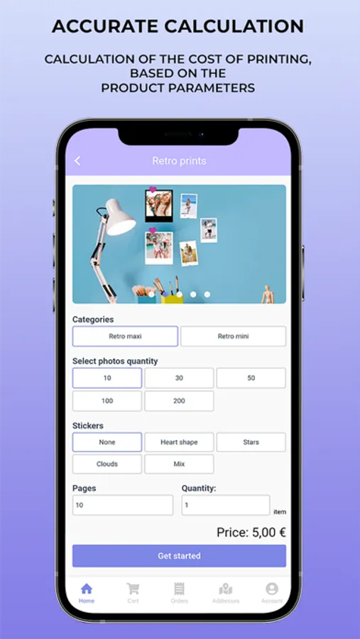 If you want to place an order, firstly, you need to pick a category and service, then upload photos, images, or files and add your comment, authorize via the phone number. All orders posted with courier service or can be collected at our store. Now we are ready to process your order! We will notify you about its arrival in our app.