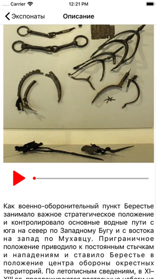The audio guide for archaeological museum “Biarescie” can help you to get more exciting information and enrich your knowledge. Archaeological museum “Biarescie” is a unique and the world's only museum of an East Slavic medieval city. Located on the site of the most ancient part of the city – the inner city of ancient Biarescie, discovered and studied in 1968–1981 by archaeologists from the Institute of History of the Academy of Sciences of the BSSR under the guidance of Doctor of Historical Sciences Piotr Lysienka. The museum opening took place on March 2, 1982.
