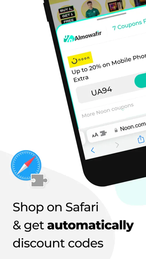 With the Almowafir iOS extension, you can now save money with just a tap of a button! No more looking for codes, while Almowafir is always there with you.