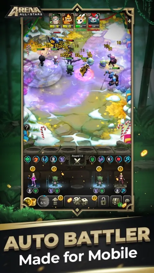 Arena Allstars adapts your favorite auto battler features and improves your mobile gaming experience in a couple of ways: (1) fast-paced action and shorter game rounds, (2) vertical orientation screen, (3) bigger characters/icons, and (4) optimized user interface and controls.
