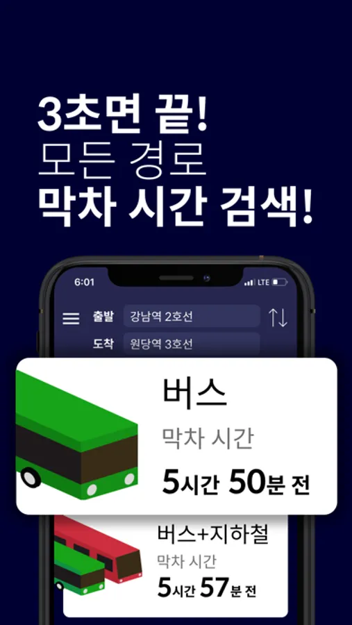 쉽고 빠른 지하철, 버스, 심야버스 막차 시간 제공 앱.