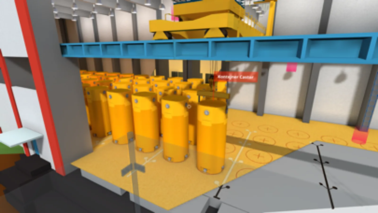 Představení jaderné elektrárny zahrnuje 12 scén s modely vnějších i vnitřních zařízení. K nejpůsobivějším patří válcová reaktorovna jaderné elektrárny a objekty umístěné v kontejnmentu hlavního výrobního bloku – reaktor, parogenerátor a hlavní cirkulační čerpadlo. Vidět je současně v jediné scéně lze samozřejmě jen díky možnostem virtuální reality. Sekundární okruh je zastoupen strojovnou, točící se parní turbínou a elektrickým generátorem. Další scény zobrazují vnější objekty – chladicí věž, sklad použitého paliva s kontejnery Castor nebo blokové transformátory. Důležitá zařízení jsou zobrazena v částečném nebo úplném řezu a představu o jaderné elektrárně završuje scéna kompletního areálu elektrárny Temelín.