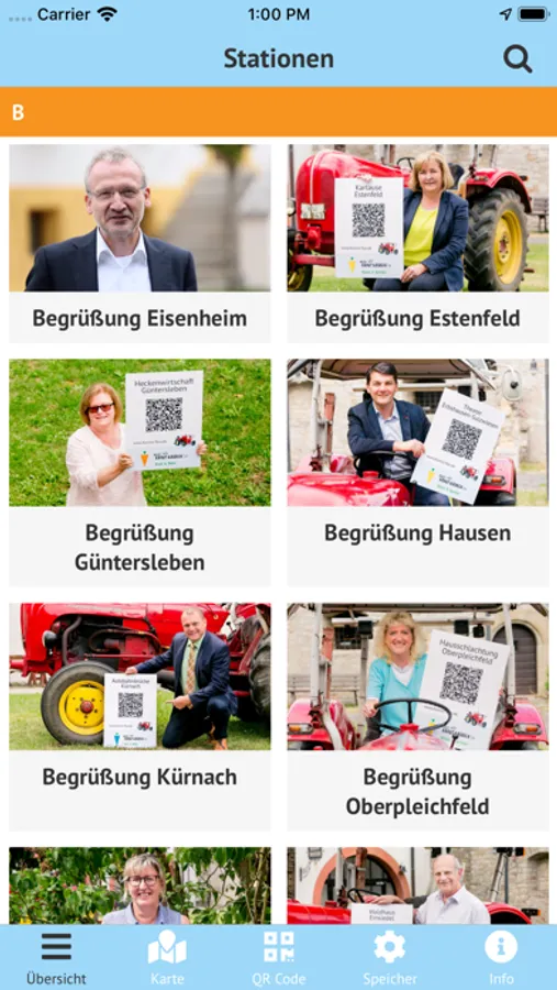 Mit dieser App können wir auf eine Ausflugs-, Wander-, Radl- oder Traktor-Tour gehen und die besonderen Orte im Würzburger Norden entdecken und erleben. In Filmen, Bildern, Tonaufnahmen, Reportagen und Interviews, die jeweils am Ort des Geschehens über QR-Codes frei geschaltet werden.