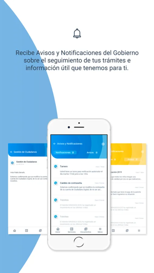 Administración centralizada de todas las comunicaciones recibidas entre el Gobierno y ud. Recepción de mails y mensajes de texto informativos y de alerta.
