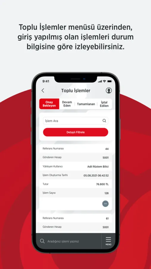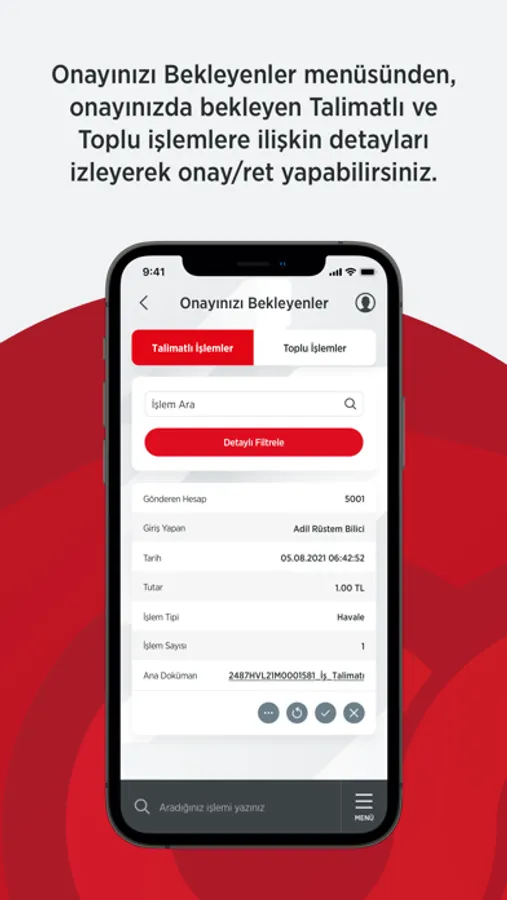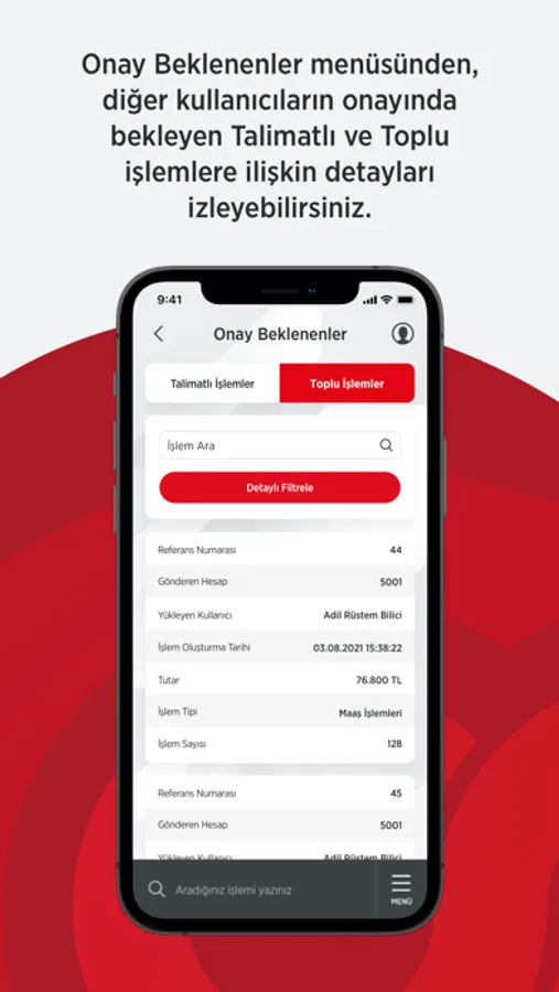 - Maaş Ödemelerinizi, Vergi ve Fatura Tahsilatlarınızı takip edebilir, onayınızdaki işlemleri izleyebilir ve onaylayabilirsiniz.