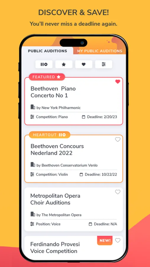 2) ACCESS private auditions using your code, APPLY for a HeartOut Competition, and/or SUBSCRIBE to discover hundreds of auditions from around the world!