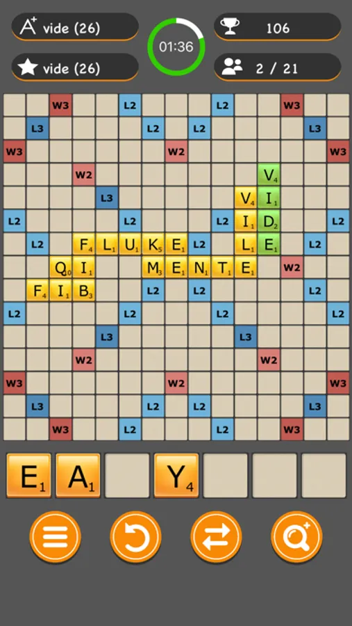 In this game, all players play with same letters on the same board at the same time. The aim is getting the highest score. You can try as many words as you can. The word with the highest score will be valid. Each turn you have 2 minutes. By the time's up, all scores listed. The highest scoring word will be played on the board. Letters renewed and next turn starts. When, all letters finished, game ends and leader board listed against to total scores and a new game starts with an empty board.