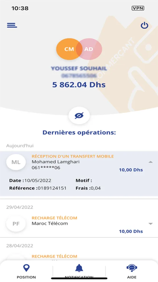 - Dépôt et retrait d’argent ;