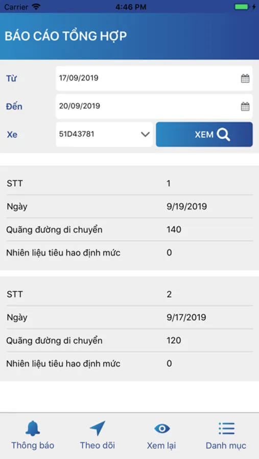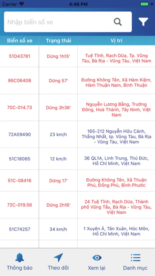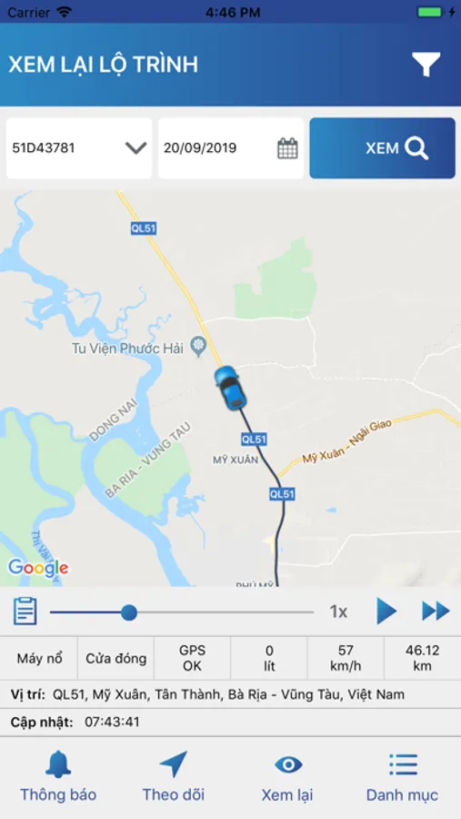 - Xem lại lộ trình của xe với đầy đủ thông tin trạng thái hoạt động