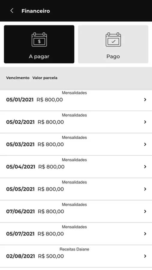 Aplicativo para comunicação entre a escola e os alunos/responsáveis, para comunicados, mensagens, notas, financeiro, tarefas, horário das aulas, código de barras de boleto etc.