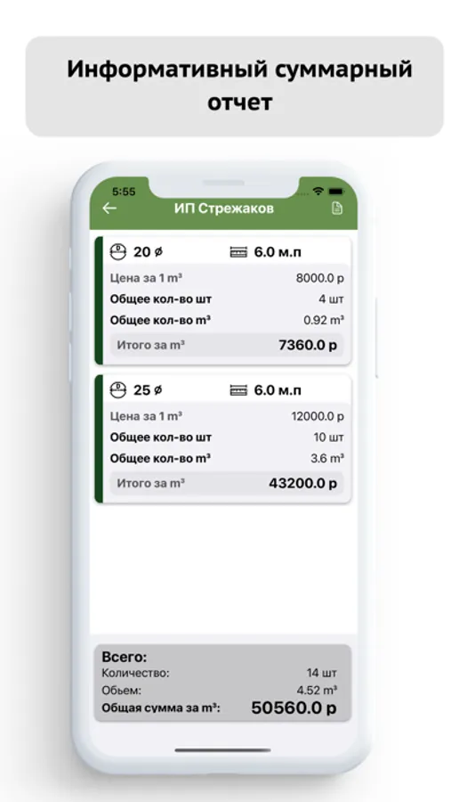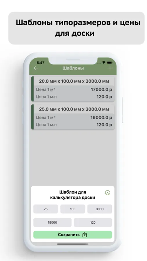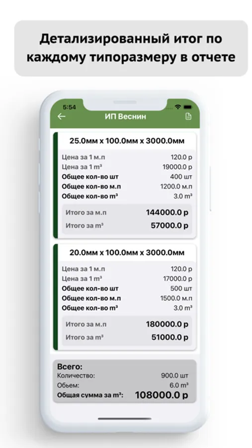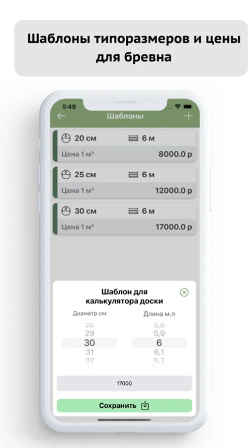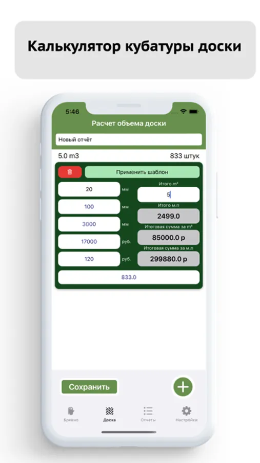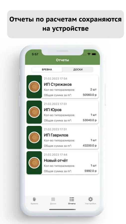▻ Сохранение отчетов в памяти телефона по расчетам доски и бревна