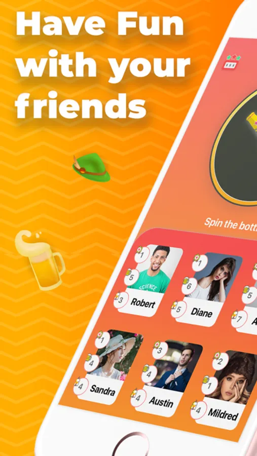 • Spin a bottle, get challenges, kiss the other players, and have fun drinking with your friends.