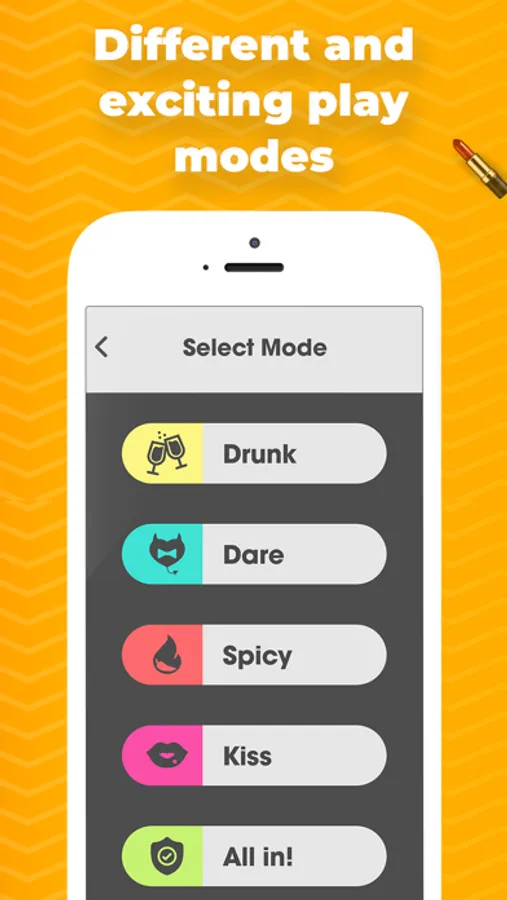 • Drunk, spicy, kiss, and some other game modes you can select with just a tap on the screen.