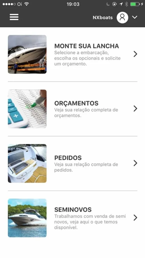 App para os clientes e lojistas NXBoats realizarem seus pedidos de forma rápida e prática.