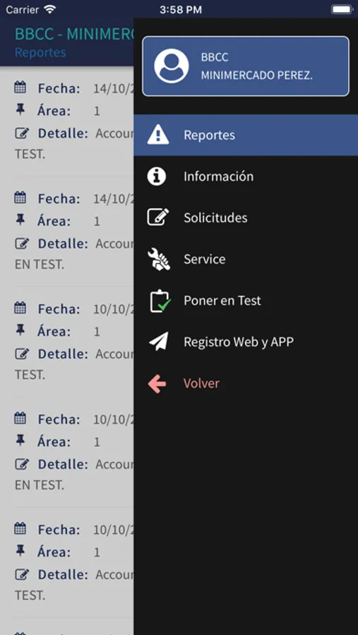 El técnico que se encuentre posicionado dentro de una cuenta podrá ver en tiempo real los reportes que el sistema realice, aun cuando la cuenta esté dentro del período de test.