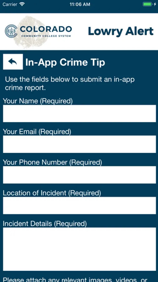 - Tip Reporting: Multiple ways to report a safety/security concern directly to CCCS Lowry security.