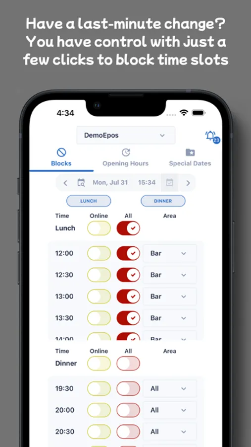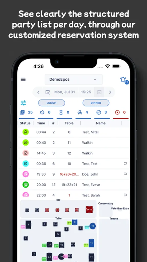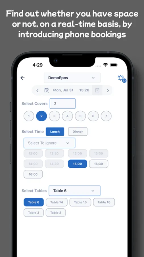 Eveve allows real time reservations, by coupling live online booking pages, with real time availability via a feed from the TELOS internal management system situated in the restaurant. The booking pages and TELOS table management allow instant reservations for guests, which: