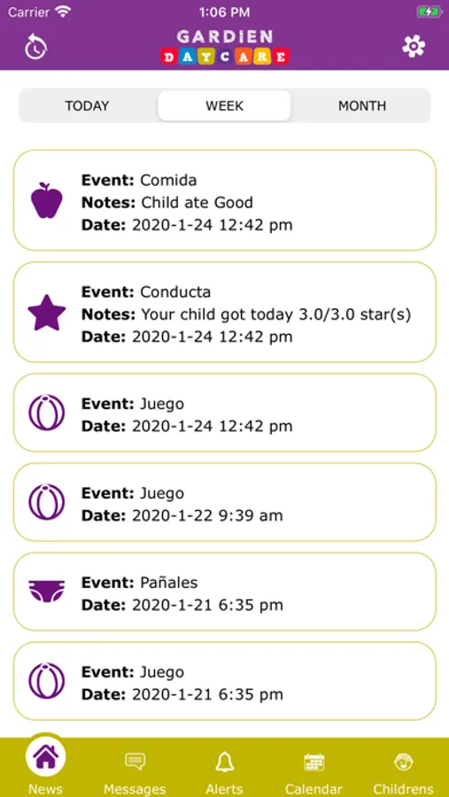 • Access to daycare's calendar and activities.