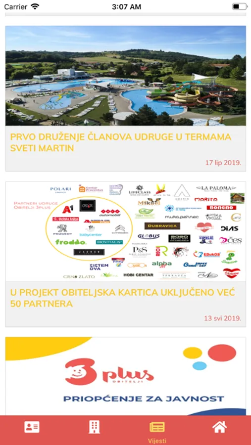 Aplikacija za članove udrge Obitelji 3plus omogućuje članovima obitelji pirstup personaliziranoj obiteljskoj kartici pomoću koje se ostvaruju popusti i druge pogodnosti kod partnera udruge. Aplikacija također omogućuje pristup vlastitim kodovima za dodatni popust kod odabranih partnera, omogućuje pretragu partnera, uvid u vijesti Udruge, te obiteljski profil.
