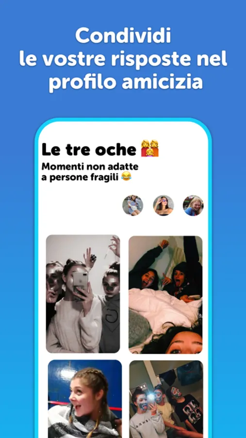 Crea profili amicizia con i tuoi amici per condividere le vostre risposte insieme. Condividi le risposte anche su Instagram, ovviamente non le più imbarazzantiii ahahahah