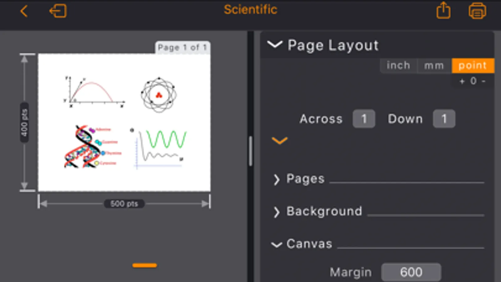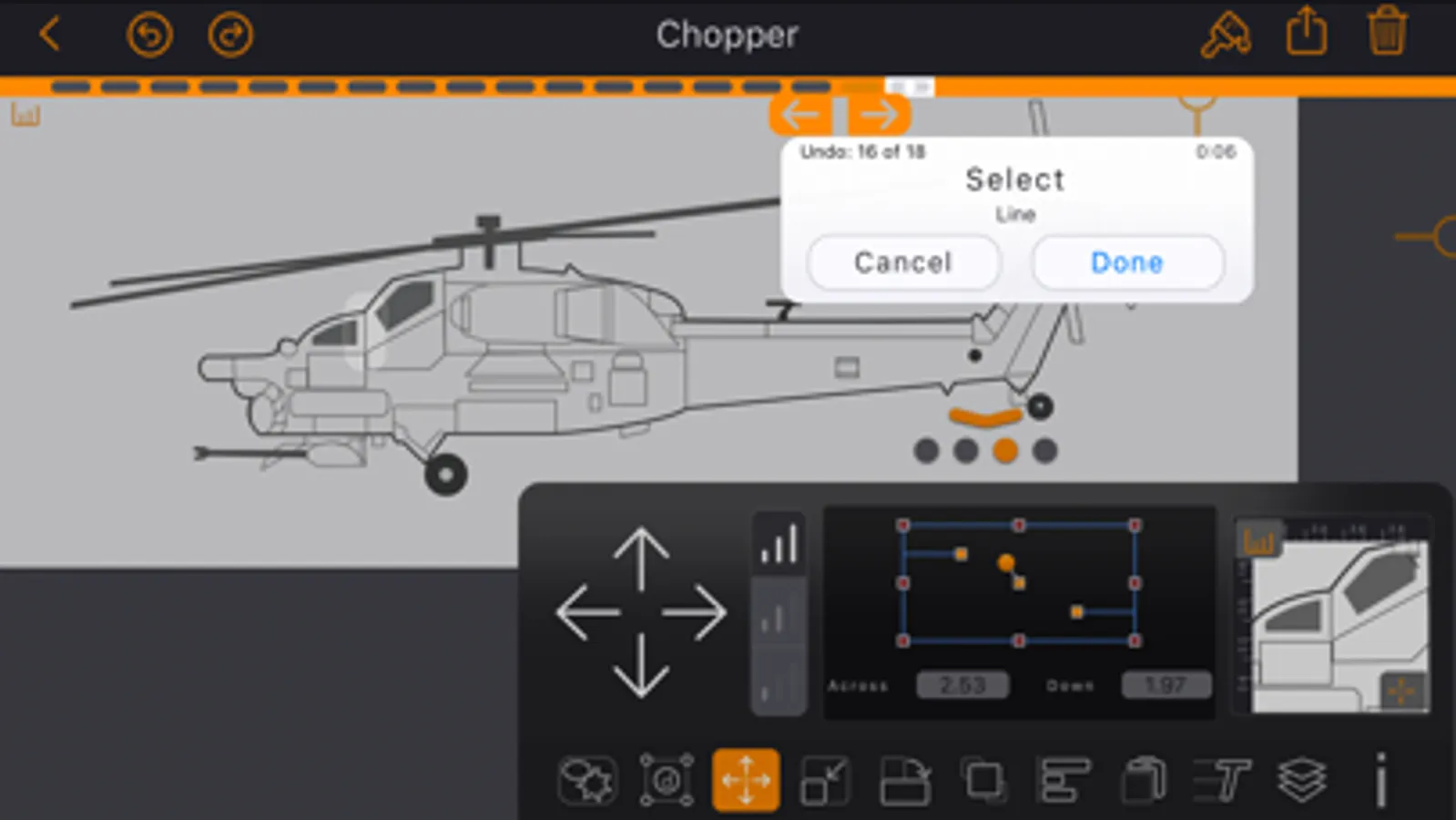 Optimize your mobile screen space with the resizable keyboard. The keyboard my be resized and positioned at the bottom, left or right side of the screen. The keyboard integrates typing support with color picking, graphic inspector, and extensive library of ready to use drawing tools and symbols.