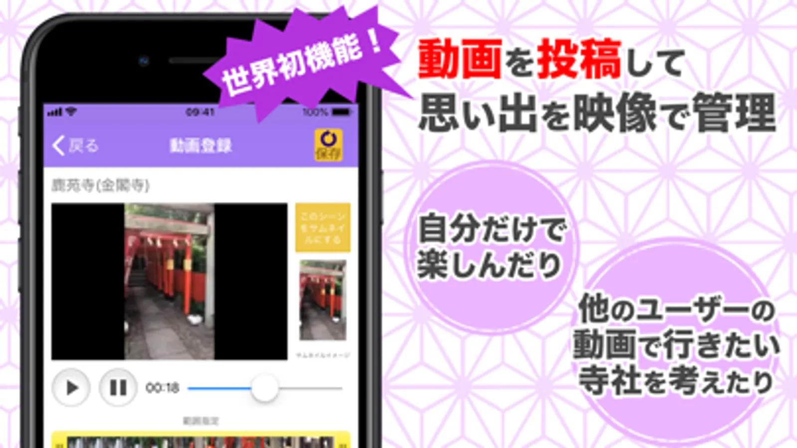 神社やお寺の動画を撮影して簡単に御朱印の記録や神社やお寺のイベント、思い出の記録がワンタッチで登録できる!
