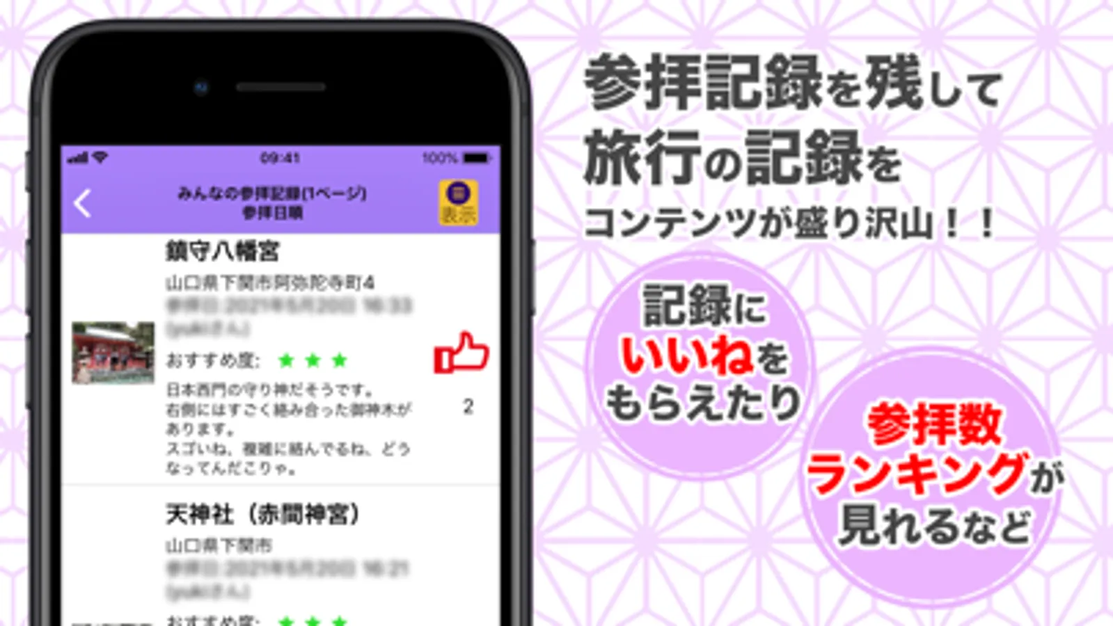 ・これまでに参拝した神社・お寺を「参拝記録」として写真付きで残すことができます。
