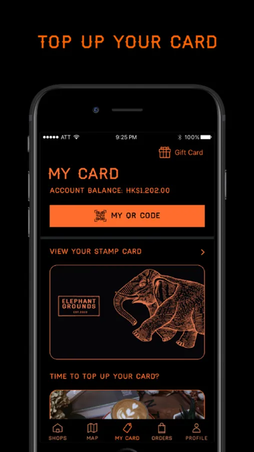 2. My Card: Create an account and top-up your card for purchasing food to go. Collect stamps to redeem free coffee.