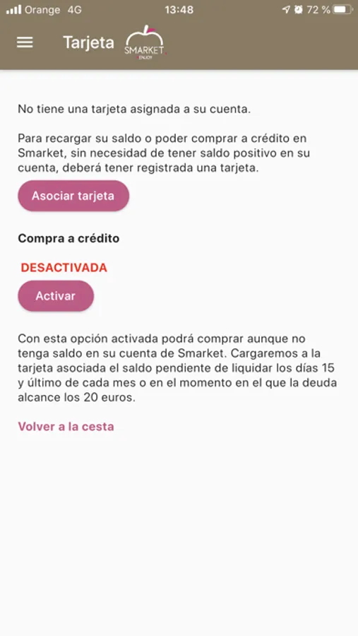 - Comprar a crédito. El usuario deberá registrar en la aplicación una tarjeta bancaria a la que se le pasará un cargo periódicamente o al superar un valor.