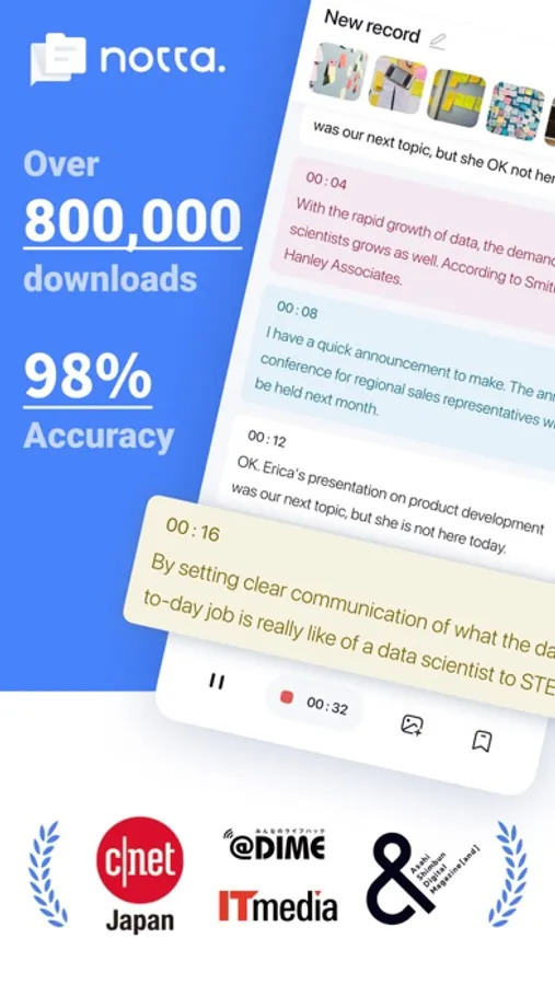 Record and turn your favorite podcast, news and talk radio, Discord chat, Zoom Classes audio to text. You can playback recordings and edit transcripts, add notes, tags, insert images to capture the valuable information from every conversation.