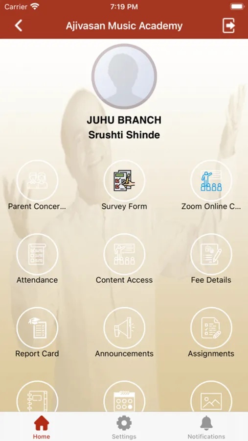 Ajivasn Music Academy provides communication app for parents using which they can download school announcements,class assignments and events.