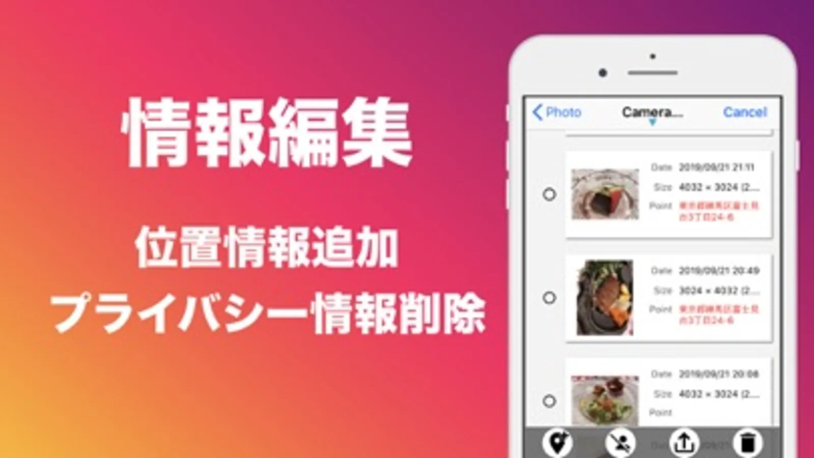 ・写真のプライバシー情報表示・削除(位置情報・Exifなど)