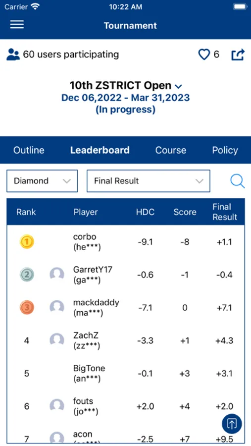 Compare your round record with your friends by various measures such as average score, flying distance, fairway hitting rate and so on.