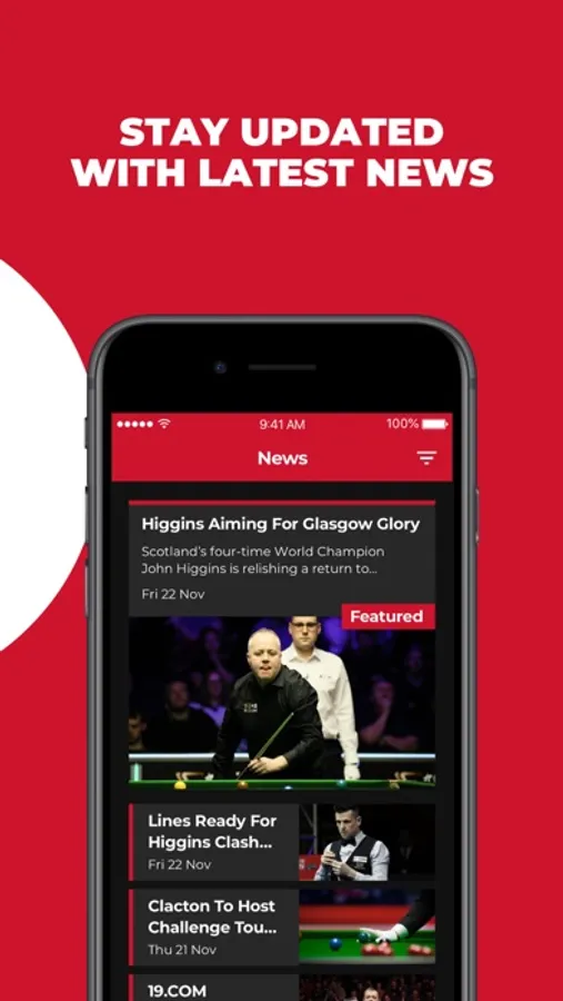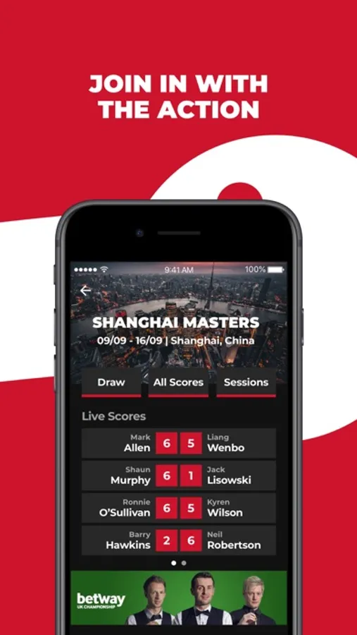 Bring the world of snooker to life on your phone, with our new official World Snooker App. Catch up with all the latest scores tournament news and player news.