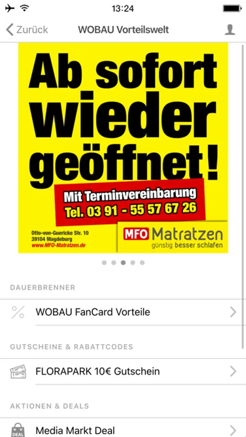 In der Mediathek innerhalb der App können Sie zudem aktuelle Videos abrufen. Diese geben spannende Einblicke in die Bauvorhaben der WOBAU, stellen interessante Wohnungsangebote vor oder lassen Veranstaltungen Revue passieren.
