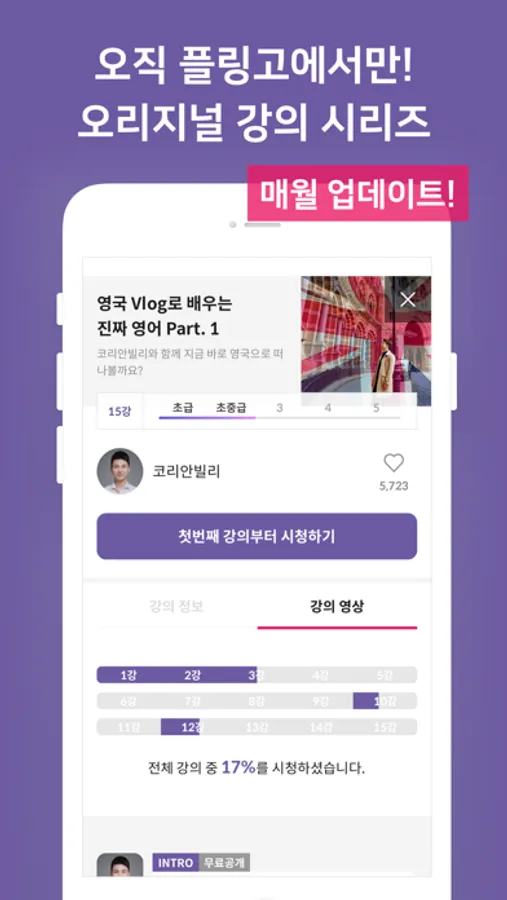 미드 영어,팝송 영어,영국 발음,기초 문법 등 다양한 강의와 새로운 크리에이터가 계속해서 추가 됩니다.
