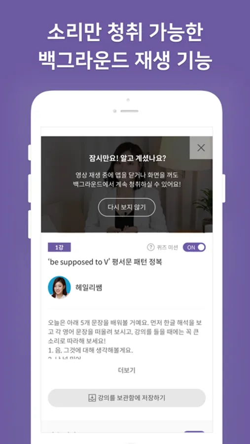 운전 중일 때, 다른 업무를 병행할 때, 강의 소리만 듣는 것도 가능 합니다.