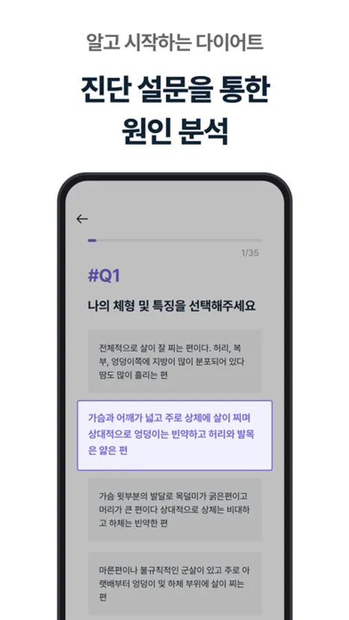 다이어트는 내가 살이 찐 원인을 찾는 것부터 시작입니다. 우리는 다 똑같은 사람이 아니듯 살이 찐 이유는 수백 가지가 될 수 있거든요. 키핏 다이어트는 맞춤 진단 설문과 체성분 분석 그리고 전담 컨설턴트와의 화상 컨설팅을 통해 비만의 원인을 찾고 어떤 방법으로 다이어트를 할지를 알려드립니다.
