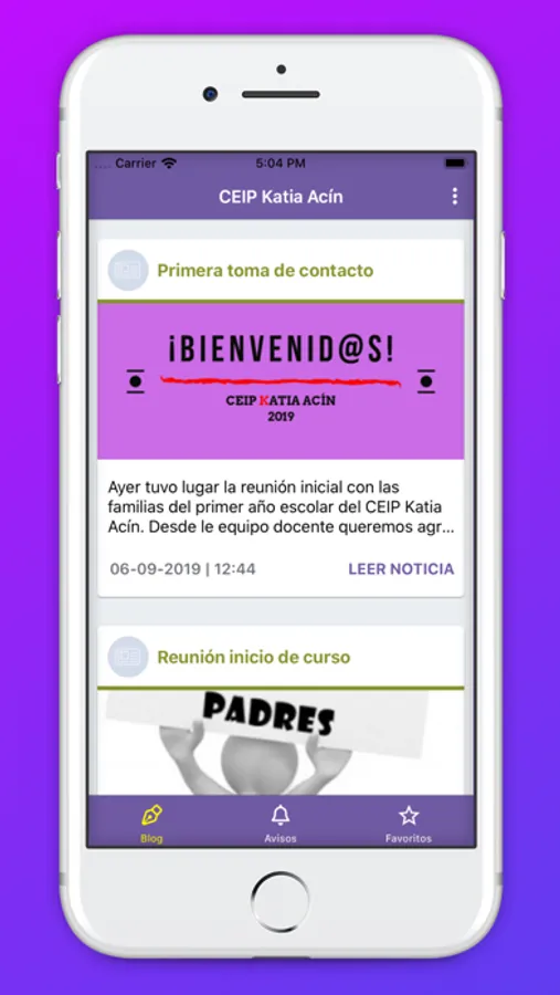 Mediante la aplicación del CEIP Katia Acín, estarás al día de las últimas noticias de nuestro centro.