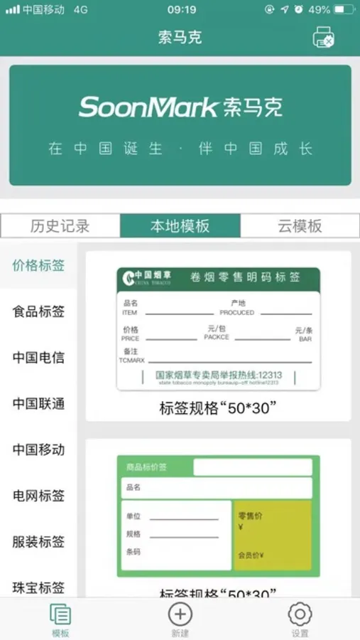 此App是针对票据、标签打印机开发的应用。App内包含许多行业通用的模板也能够自己编辑自定义模板使用。通用模板可以编辑模板内容,新建自定义模板可以自由编辑内容进行打印。自定义模块中包含了二维码、文本、图片、插入Excel数据、线条、矩形等功能,还有智能识别的方法(语音识别、图片识别、扫码识别)。