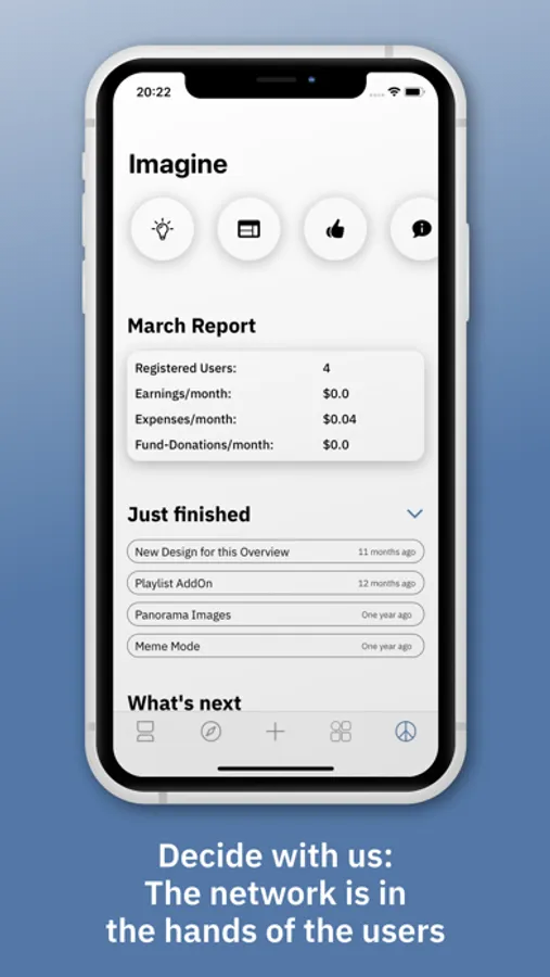 Our ideals are not a temporary mood of the founders, which are discarded with the first investor. All decisions about the future of Imagine, as well as the internal reporting and blocking procedures, are decided by the users. Each member is a part of Imagine and can decide for themselves how large this part should be.