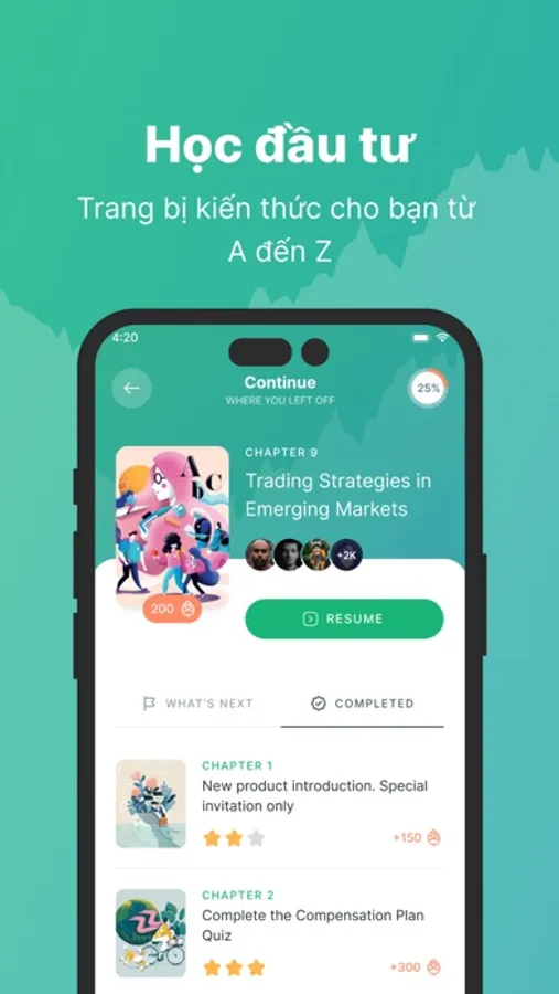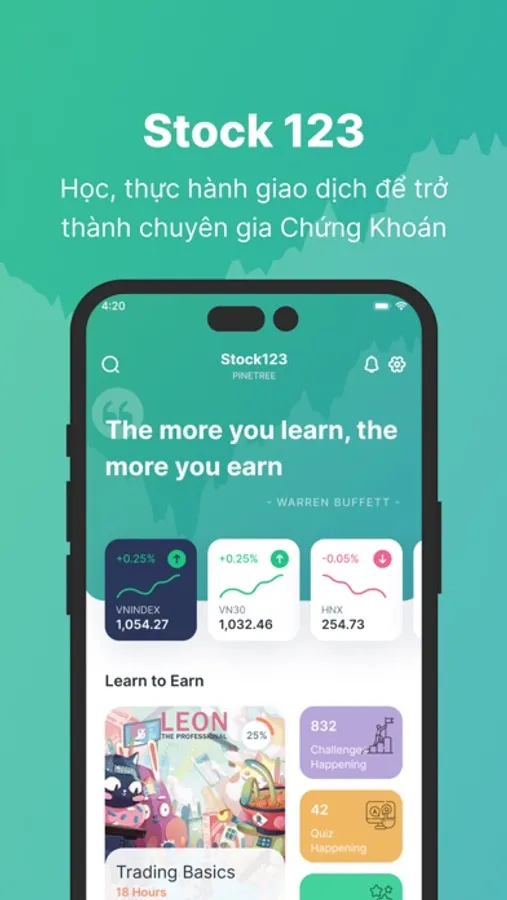 - Trang bị kiến thức đầu tư tài chính và chứng khoán từ cơ bản đến phức tạp với ngôn ngữ dễ hiểu, thiết kế bài học hấp dẫn bằng các công cụ: audio, video, trò chơi, trắc nghiệm, thử thách…